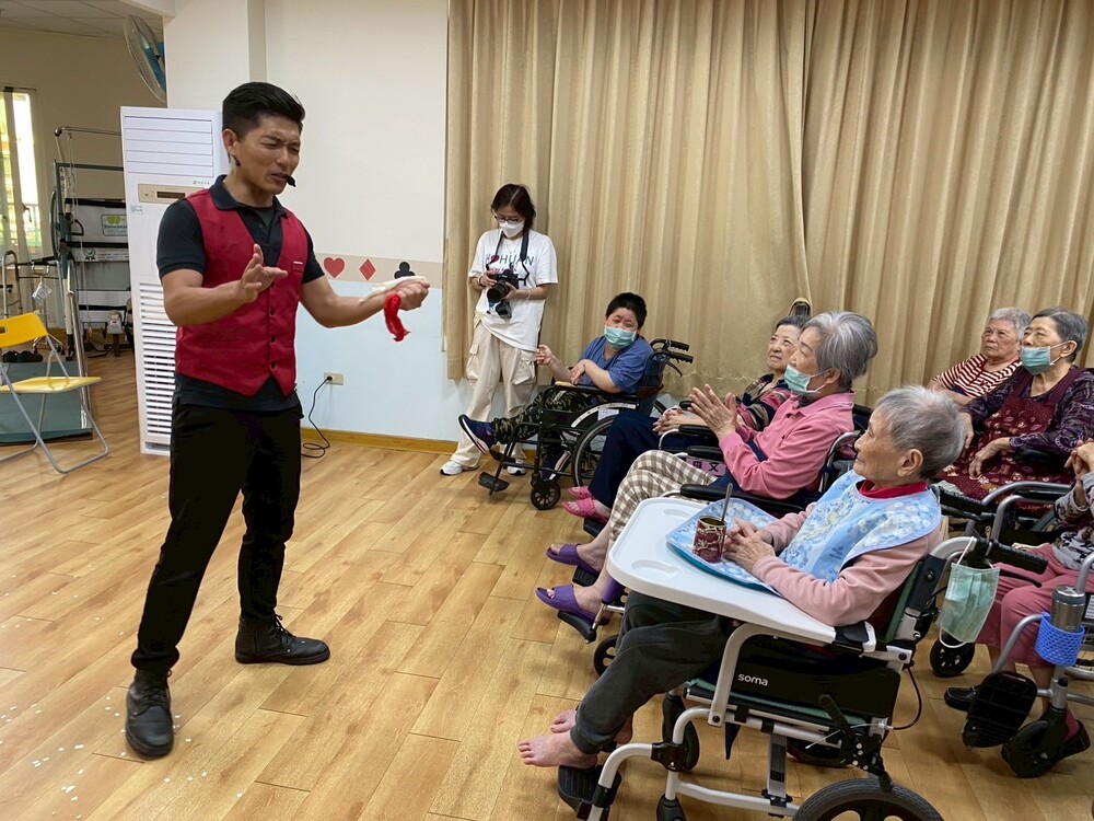 除此之外也特地邀請 #何歡劇團 前來進行魔術表演 ,精彩川劇變臉讓住民驚奇連連 ,我們員工們也上場開心協助喔!!
