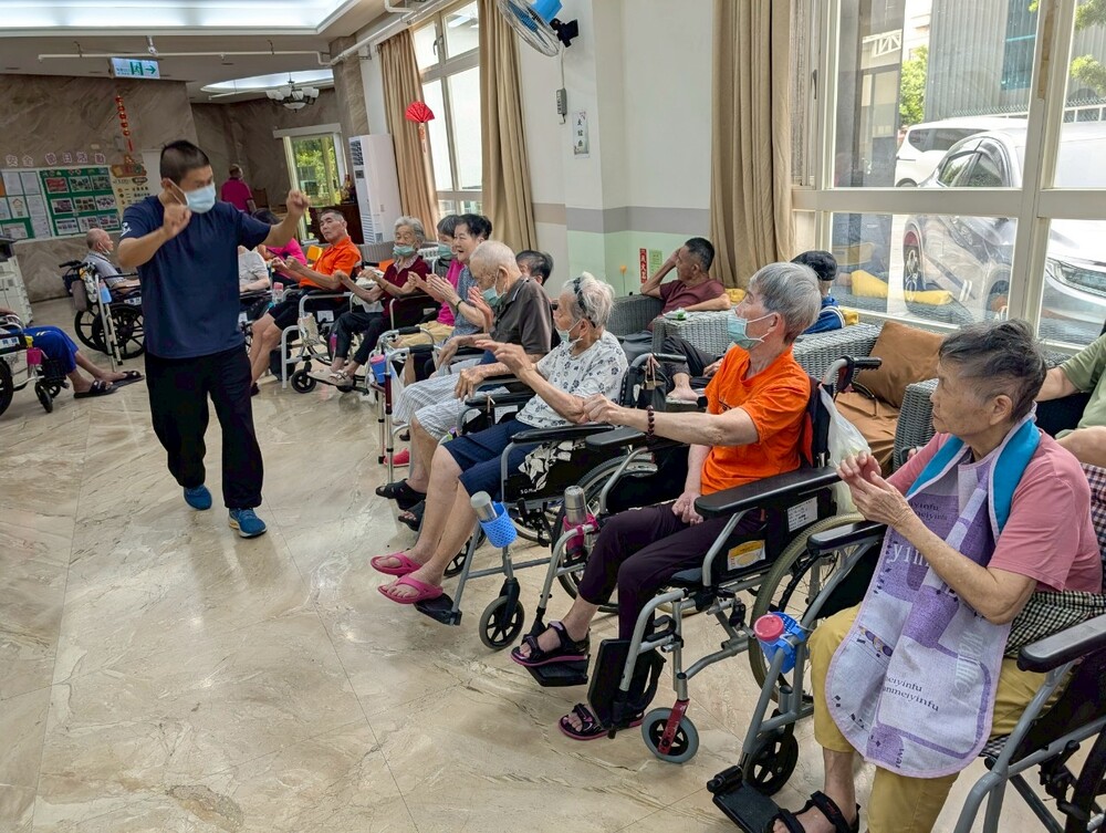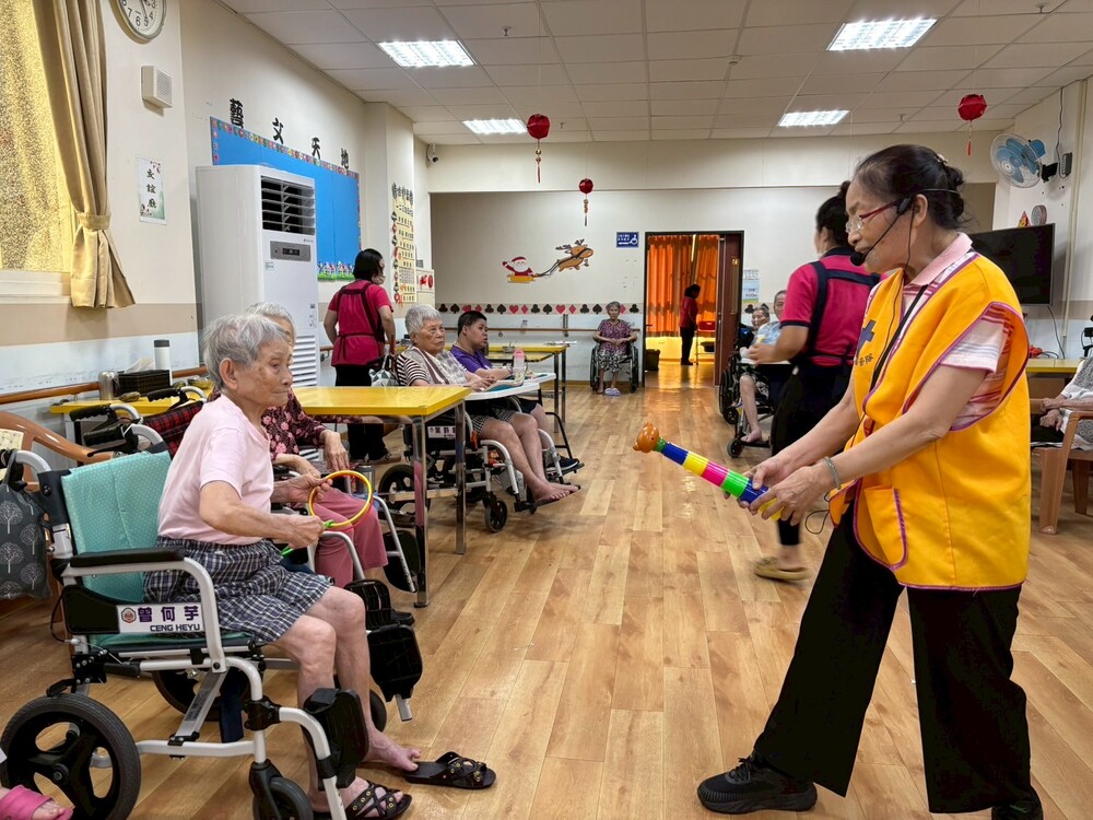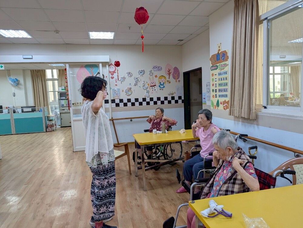 除了上述活動,我們也安排復健師來位長輩們進行復健,還有社工師會安排團康活動,#空大社工系 實習生也很認真的在關心住民 ,讓長輩們健康不寂寞。