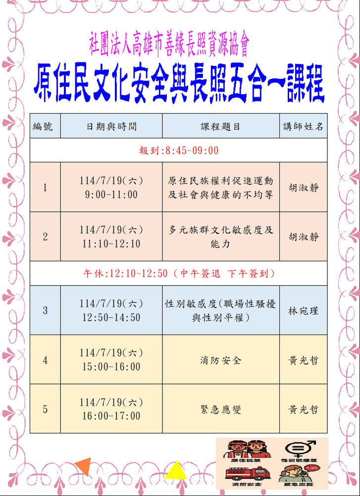 | 114/07/19原住民族權利促進運動及社會與健康的不均等 (長照5合1課程)-7小時 |