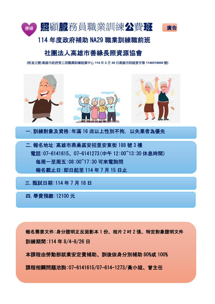 洽詢電話:(07)6141615、6141273轉黃小姐、曾主任