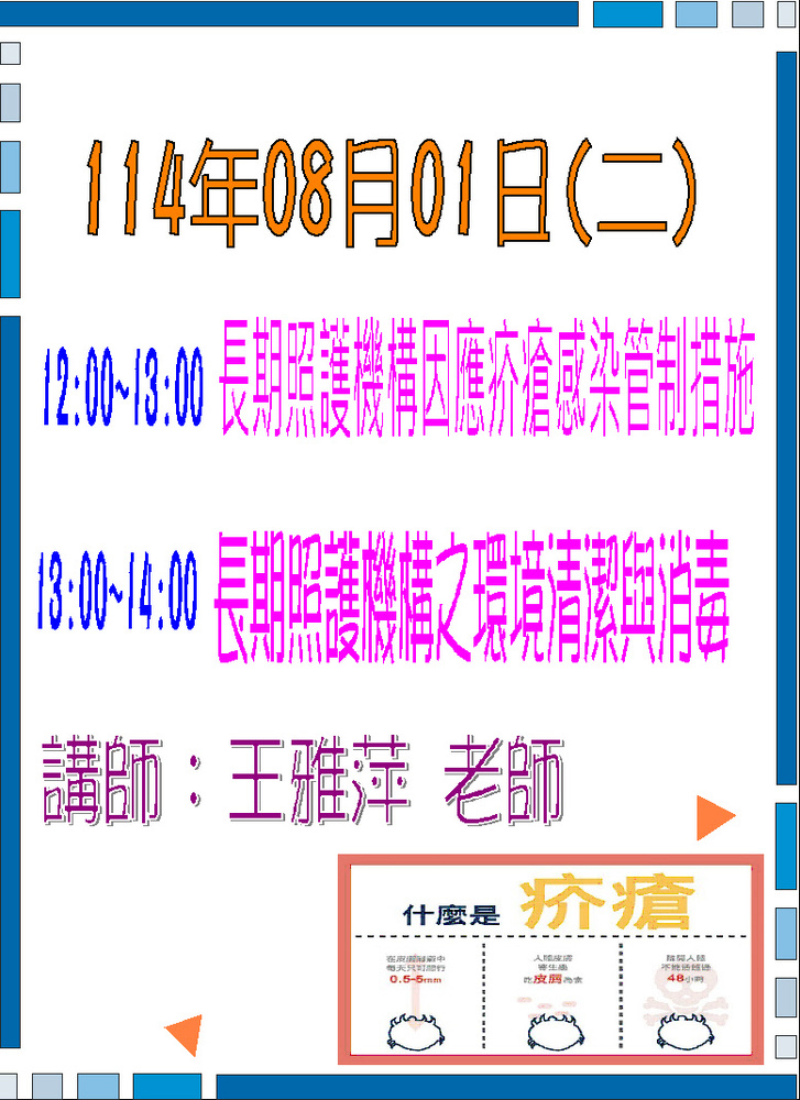 感染管制(長期照護機構因應疥瘡感染管制措施及環境清潔與消毒)-2小時