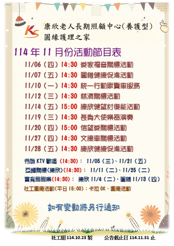 114年11月份活動節目表出爐了