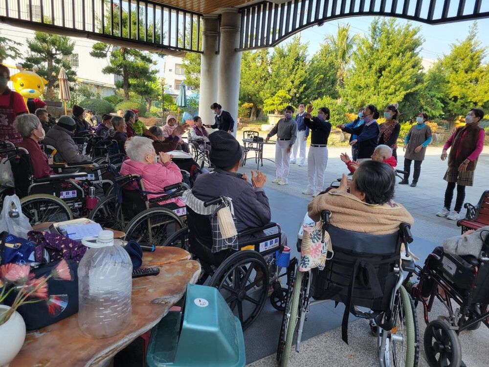 「慈濟關懷活動」由志工親自到場慰問與陪伴,為長者送上溫暖與祝福;「亞鐳慈善會」則分享與倡導如何協助失依住民有效連結外部資源,促進照護品質提升。「愛心快樂樂團」帶來精采的公益表演,為現場注入歡樂氣氛,緊接著的「歡唱KTV」活動則讓住民在熟悉旋律中盡情歌唱,表達情感。