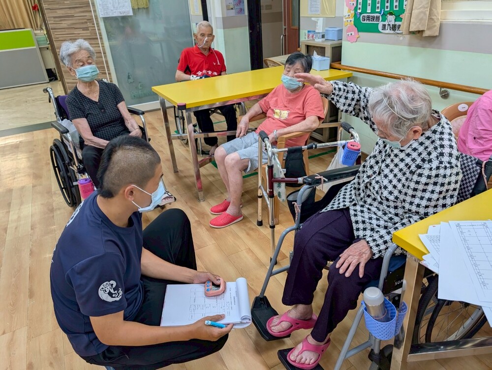 除了上述活動,我們也安排復健師來位長輩們進行復健,還有社工師會安排團康活動,#空大社工系 實習生也很認真的在關心住民 ,讓長輩們健康不寂寞。