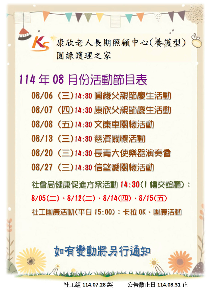 歡迎家屬朋友共襄盛舉,一起參與這些充滿溫馨的時光!