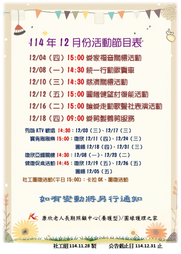 康欣 & 圓緣 114 年 12 月活動節目表